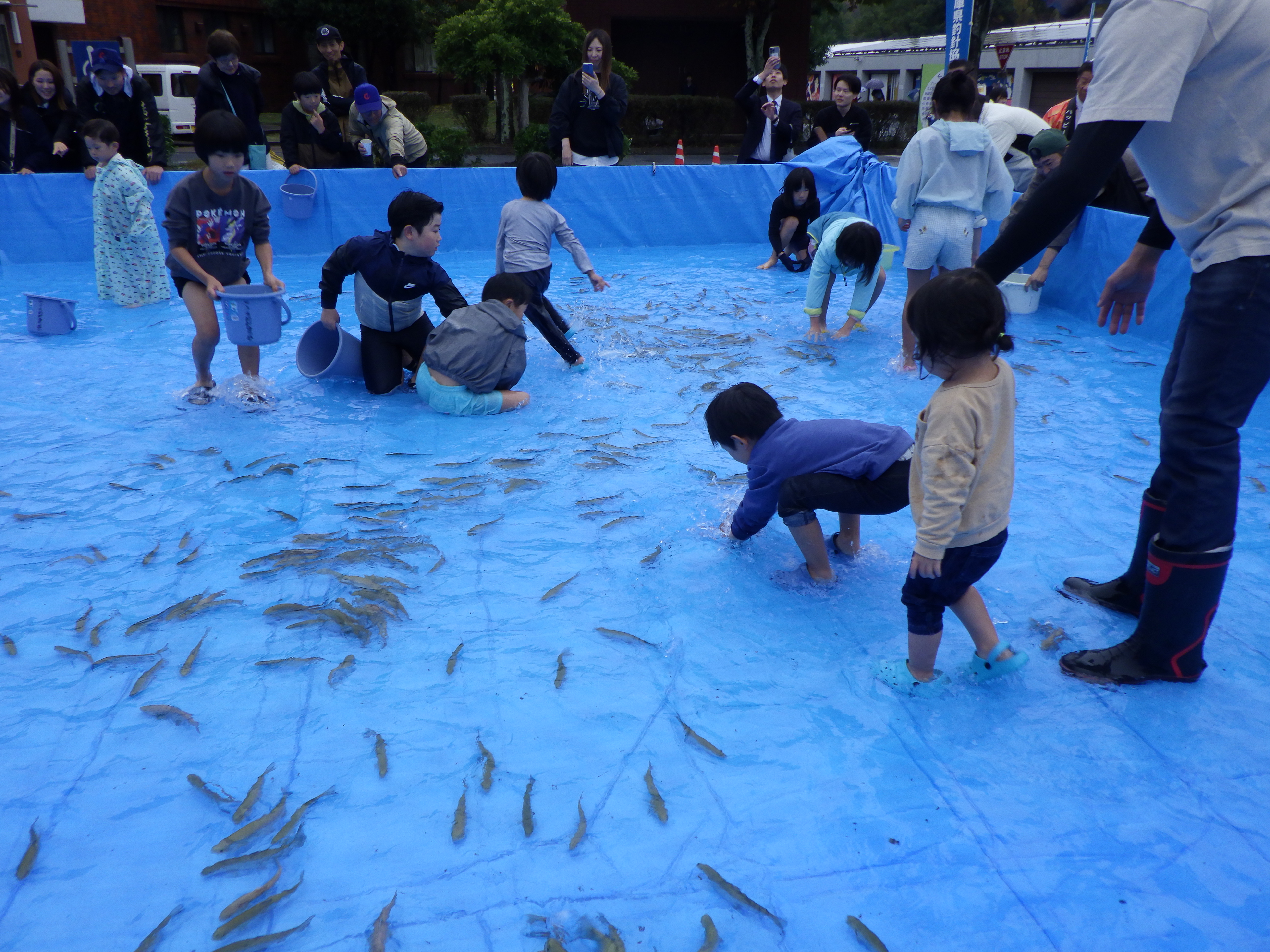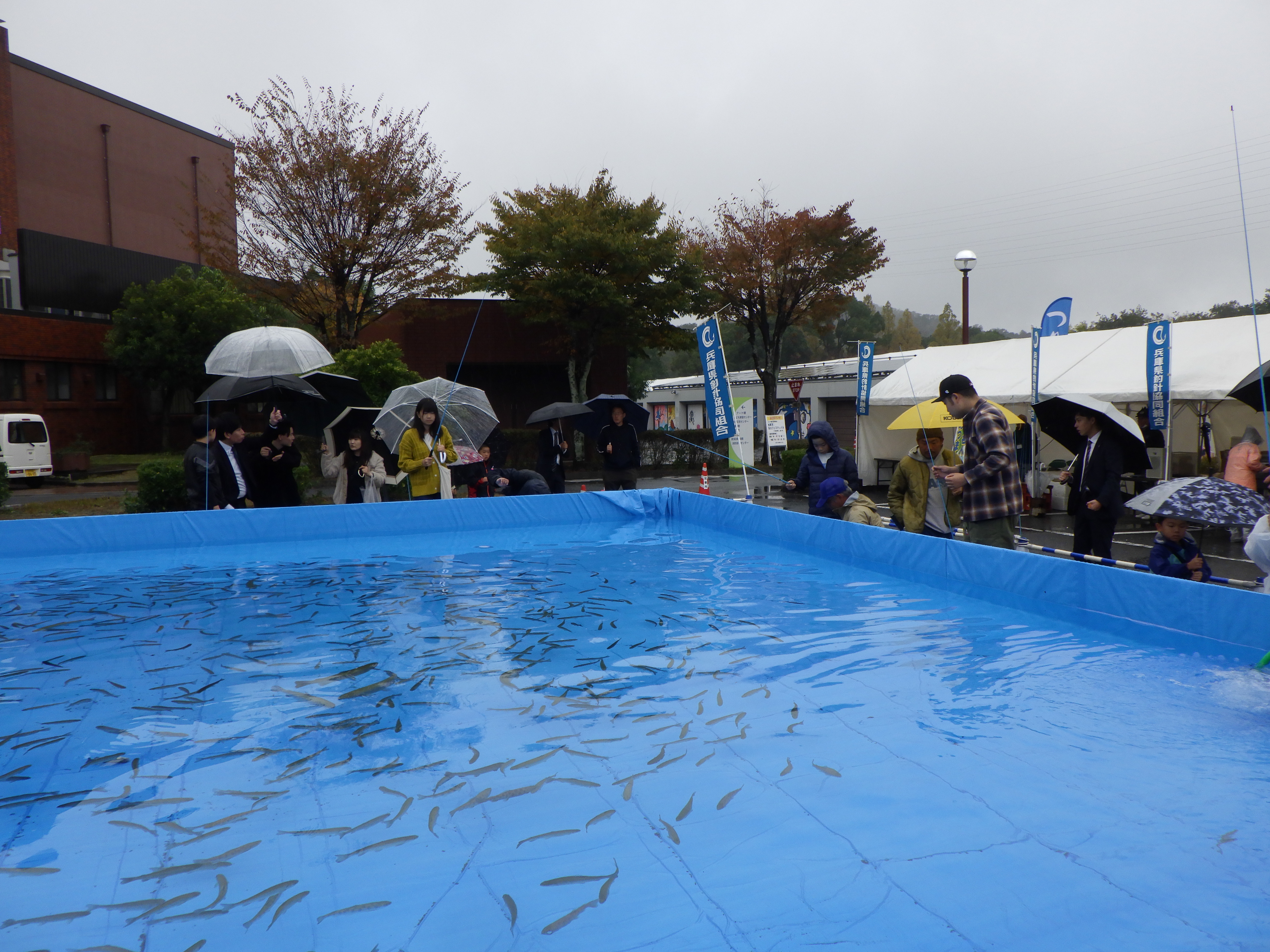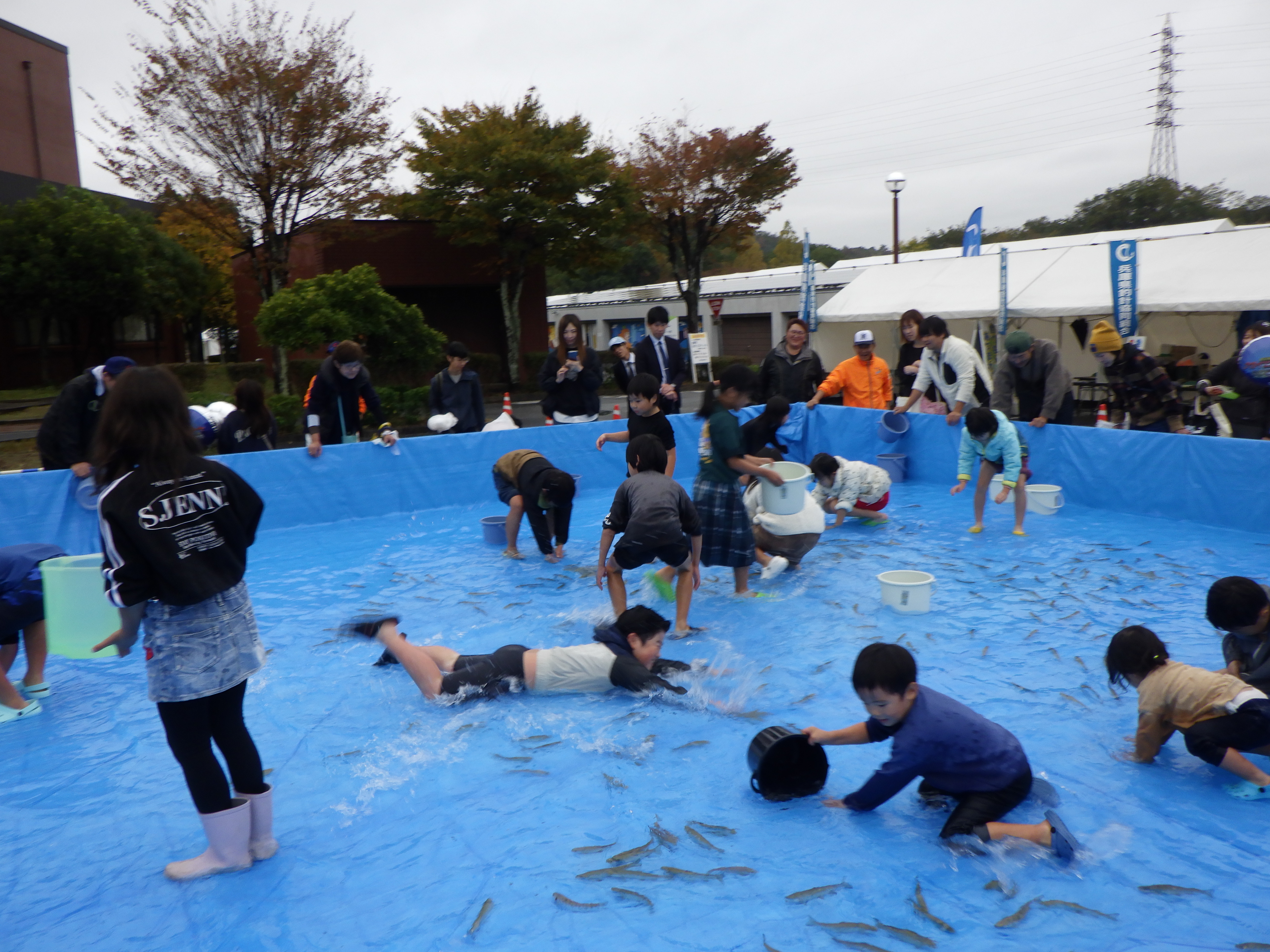 加東市秋のフェスティバル2025が11月9日(日)播磨中央公園で開催されました。 今年も兵庫県釣針協同組合は「釣り名人あつまれ」のブースを出展・運営しました。 あいにくの雨でしたが、参加者はアマゴ・ニジマス釣りを楽しく過ごしていました。 午後3時から水を抜いた釣り堀で子供たちは「掴み取り」で魚を追いかけて喜んで いました。